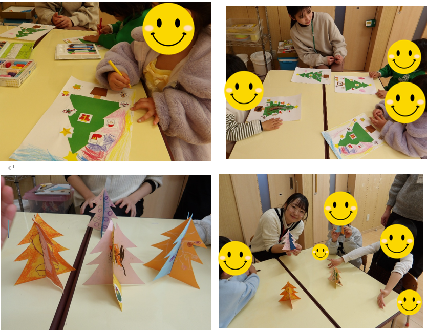 はさみやクレヨン、のりなどを使って様々な飾りが出来ました。